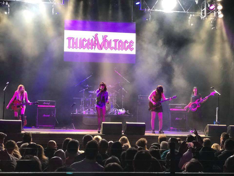 THIGH VOLTAGE is a female tribute to AC/DC, and their rowdy image, giant riffs and monster sound. Their performance is described as raw, aggressive, and sexy, complete with all of Angus Youngs trademark guitar solos. These girls rock hard and will never let you forget the legacy of the worlds biggest rock n roll band.